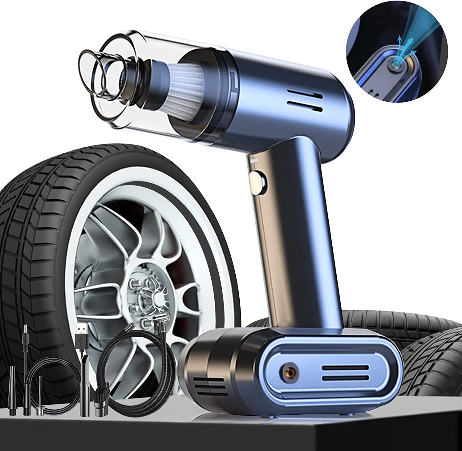 This digital tire inflator has a large LCD digital display, which can report accurate data in real time, and the tire pressure is clear at a glance! Built-in LED light allows you to operate easily at night.