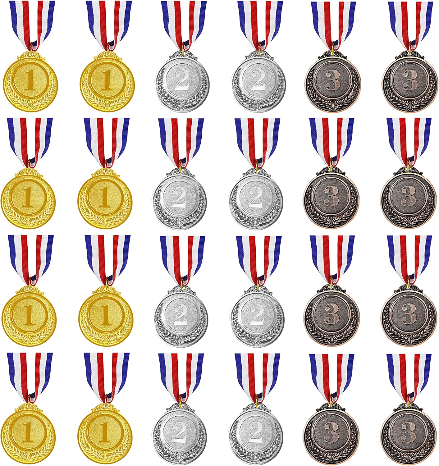 The set includes 8 gold *, 8 silver * and 8 copper *, red, white and blue neckbands, a total of 24.