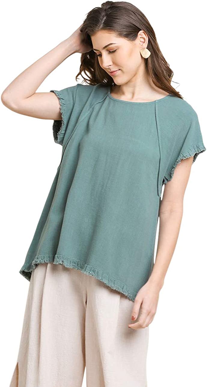 Round neckline : short fringed sleeves : high low fringed hemline : one pleat on back : a-line shape