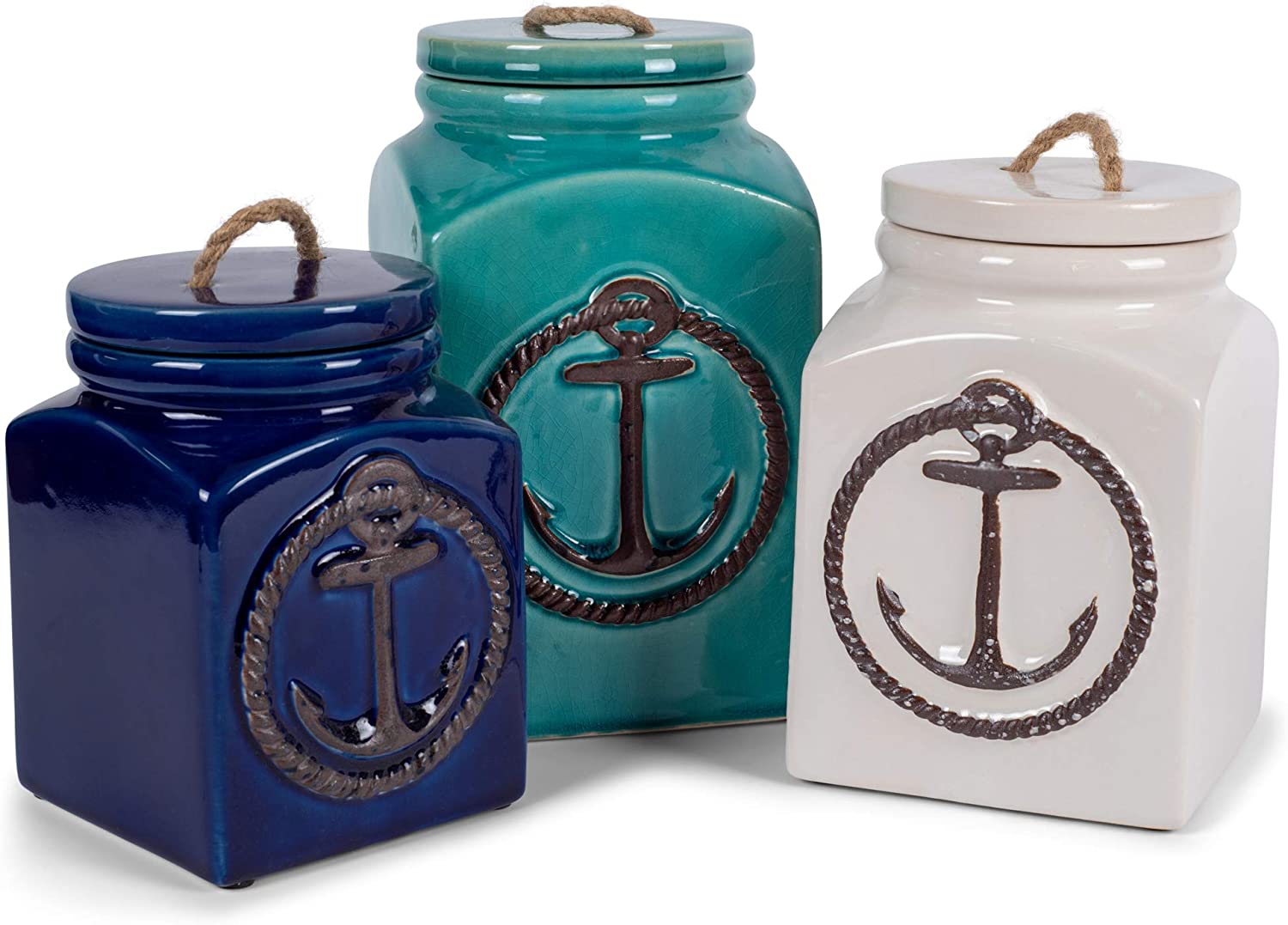 3 Piece Canister Set Measures Approx. 9″H, 8″H and 6.5″H Made of High Quality Glazed Ceramic Comes in Box