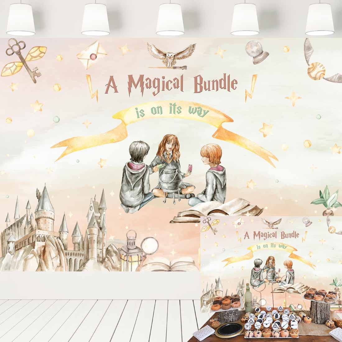 This wizard baby shower background curtain is made of thin art fabric, not plastic. It is made of chemical fiber material, light weight, easy to fold, carry and store, vivid colors and lifelike details