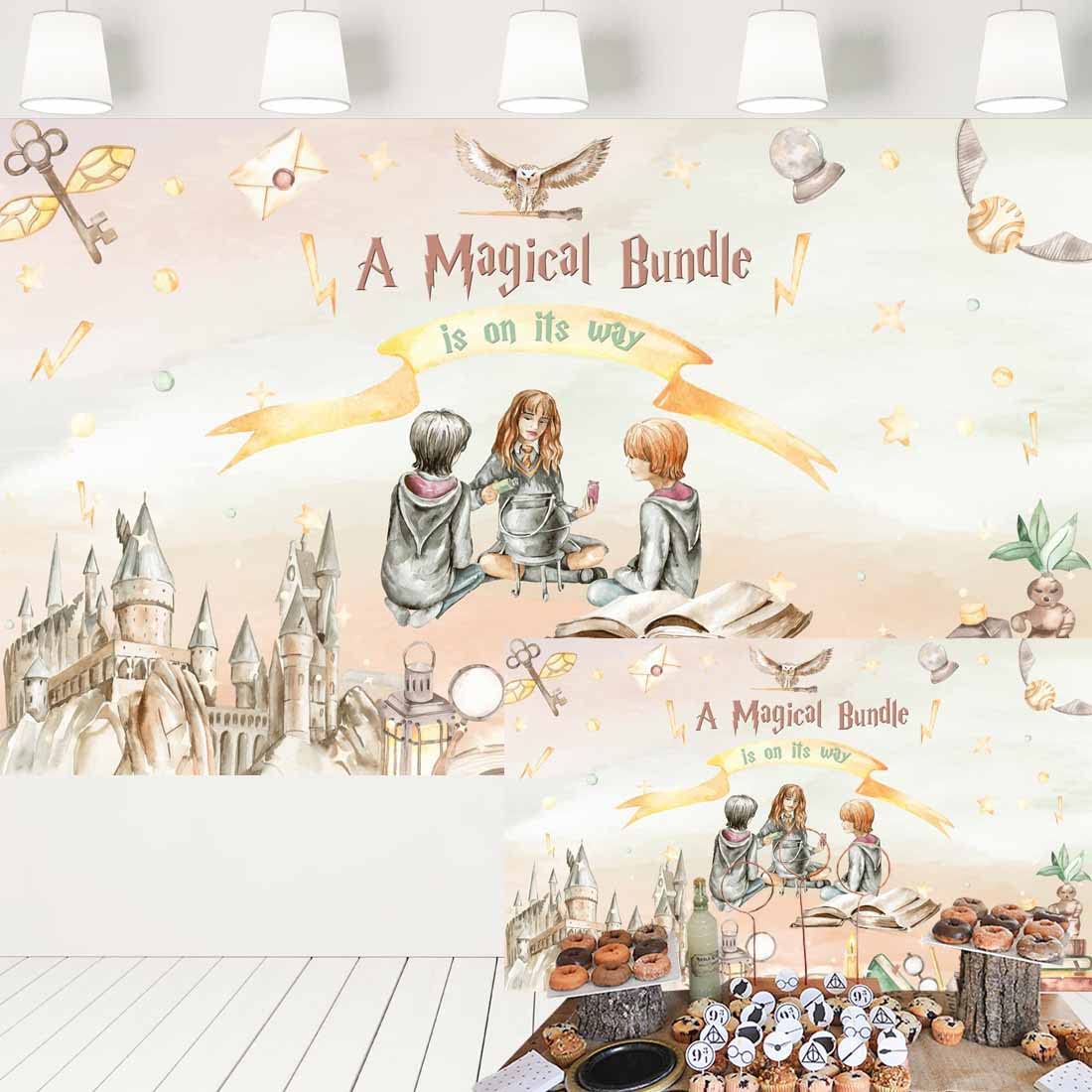 This wizard baby shower background curtain is made of thin art fabric, not plastic. It is made of chemical fiber material, light weight, easy to fold, carry and store, vivid colors and lifelike details