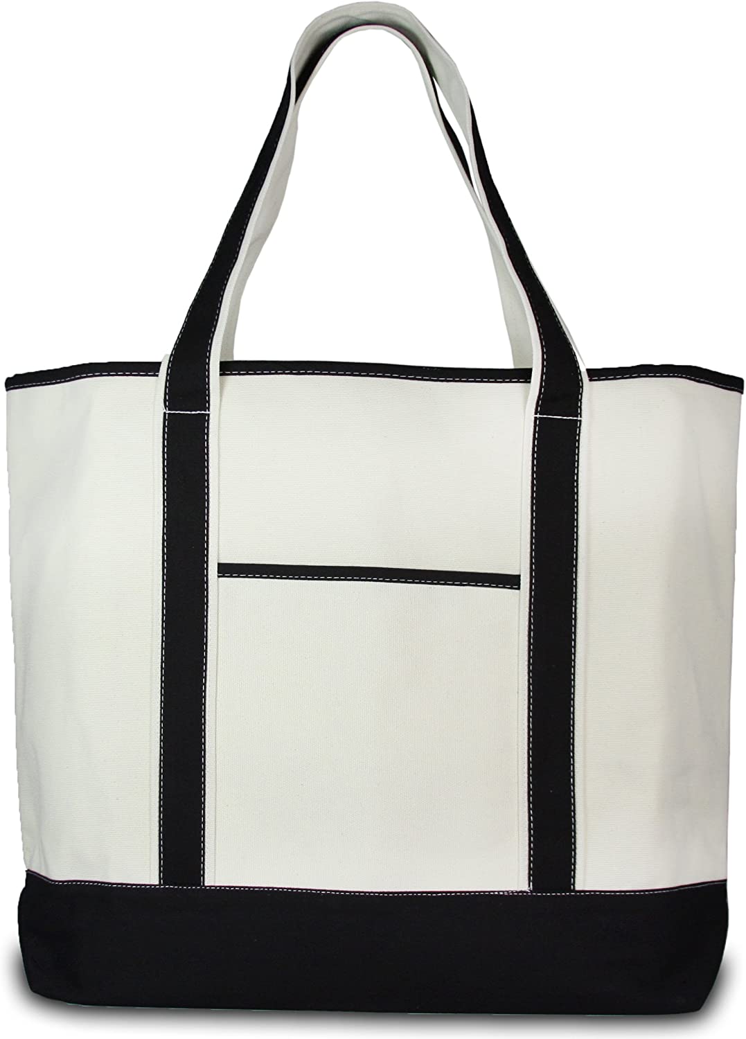 22 inch handles Interoir zippered pocket 15oz. cotton canvas Size: 22″ W x 16″ H x 6″ D approx. Extra Sturdy