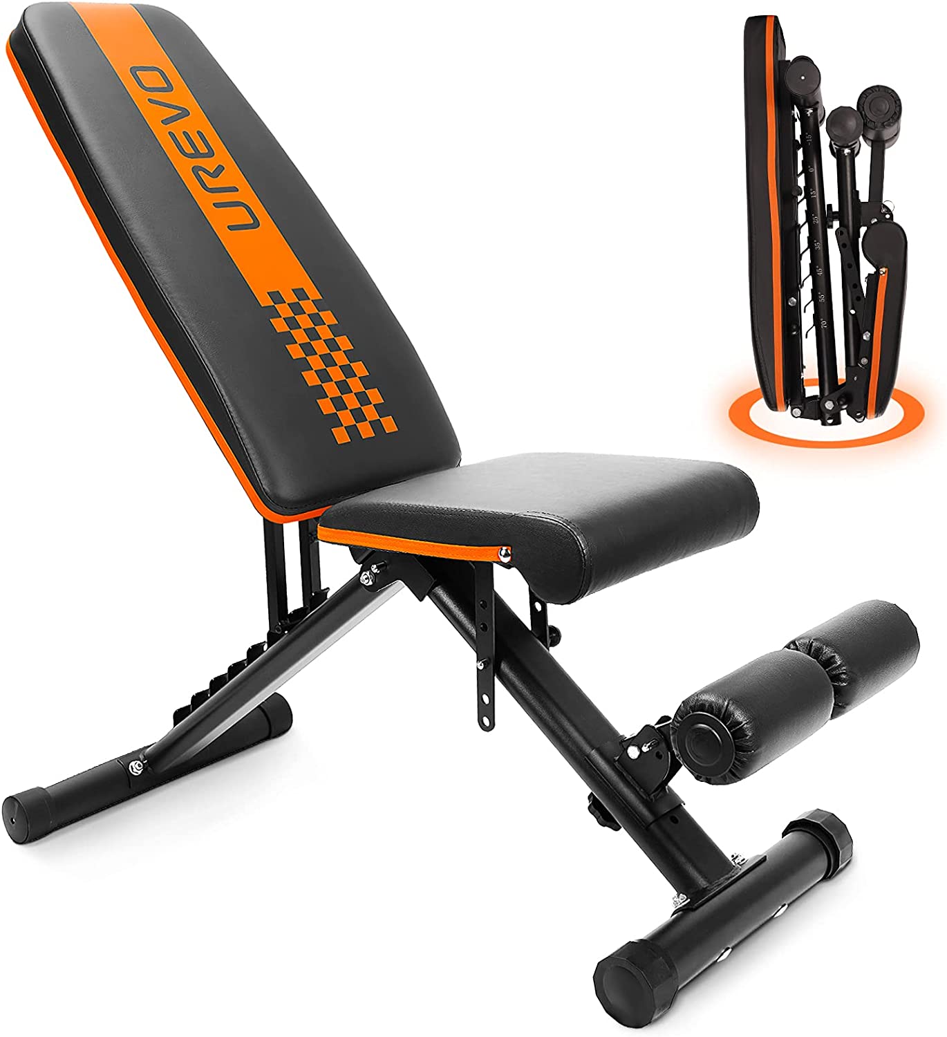 Adjustable weight bench: UREVO weight bench with 8 backrest positions, 5 seat positions and 4 leg support positions can be easily adjusted. You can choose different angles according to your height and habits, which is natural and comfortable. A variety of adjustment ranges allow you to have tilt, flat and tilt tables, which are all in one. Load capacity: 600 pounds