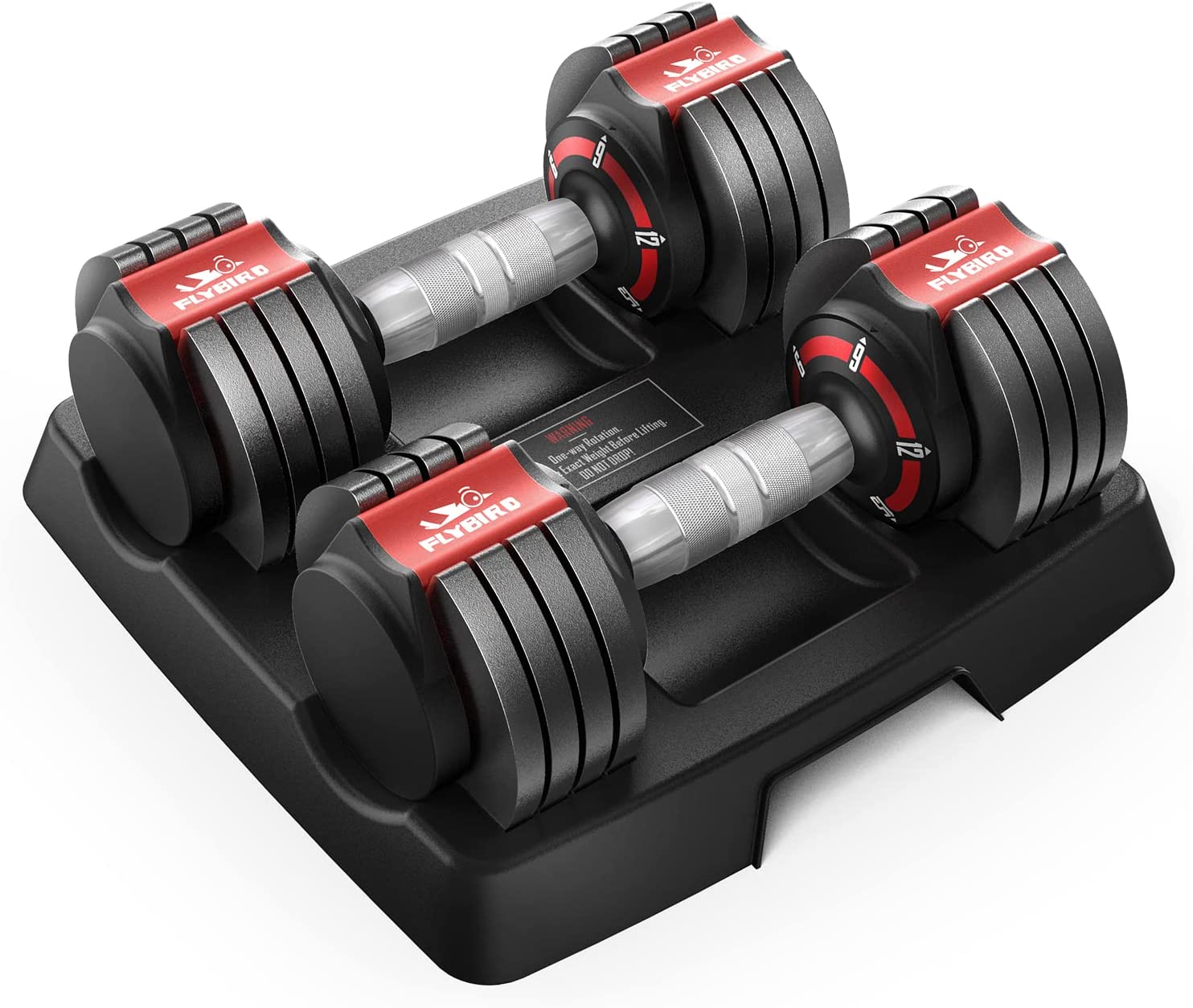 Keep in order and don’t let multiple dumbbells mess up your exercise area. FLYBIRD adjustable dumbbell allows you to exercise five sets of weights without disturbing the space.