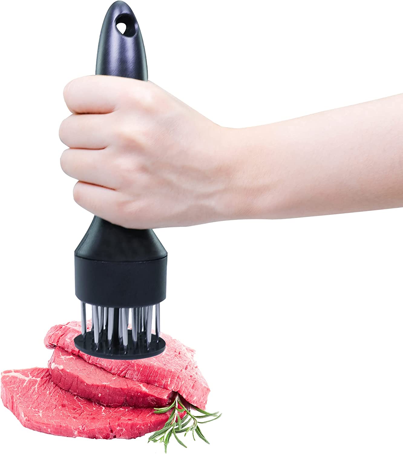 20 uniform stainless steel needles on the press can quickly pickle the steak and loosen the meat. Each press can penetrate into the meat to make it more soft and delicious.
