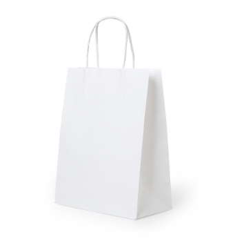 Environmentally friendly paper bag: The white paper bag is made of 100% recyclable paper. Compliant with FSC standards.