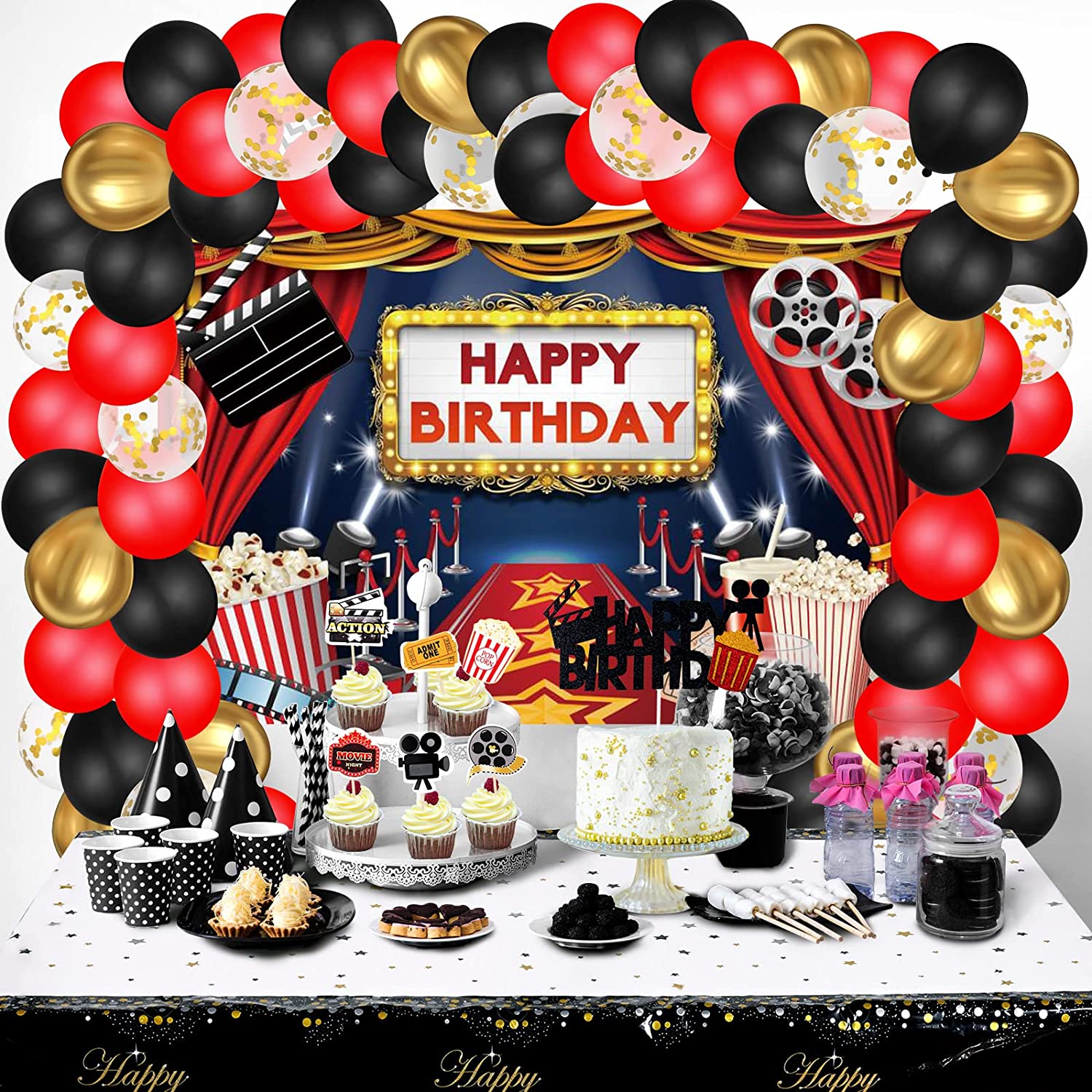 Film theme elements: including various elements related to the film, such as popcorn, heavy curtain, red carpet, spotlight, etc. These photo booth backgrounds and balloons are excellent decorations for theme parties, film parties and other theme activities.