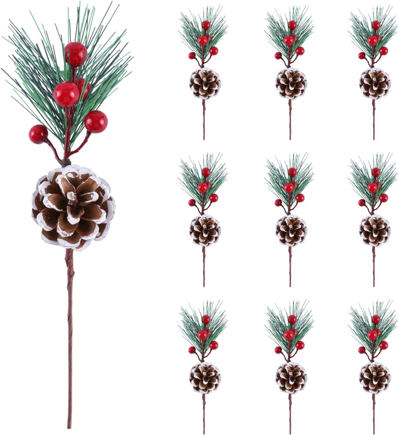 The artificial pine branches have red holly berries and pinecones, each of which is firmly fixed on a flexible stem. The style is rich, natural, and amazing. The spray of artificial spruce is made of artificial snow dust, which can highlight Christmas Day.
