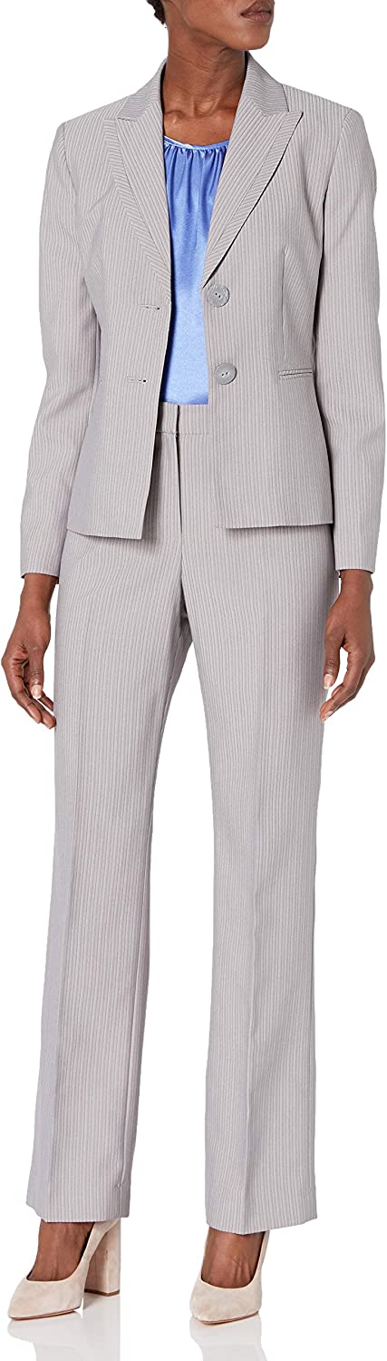 Fabric type: 100% polyester Style: Pinstripe 2 Button Jacket Pant Suit Note: Dry cleaning only Pinstripe 2 button